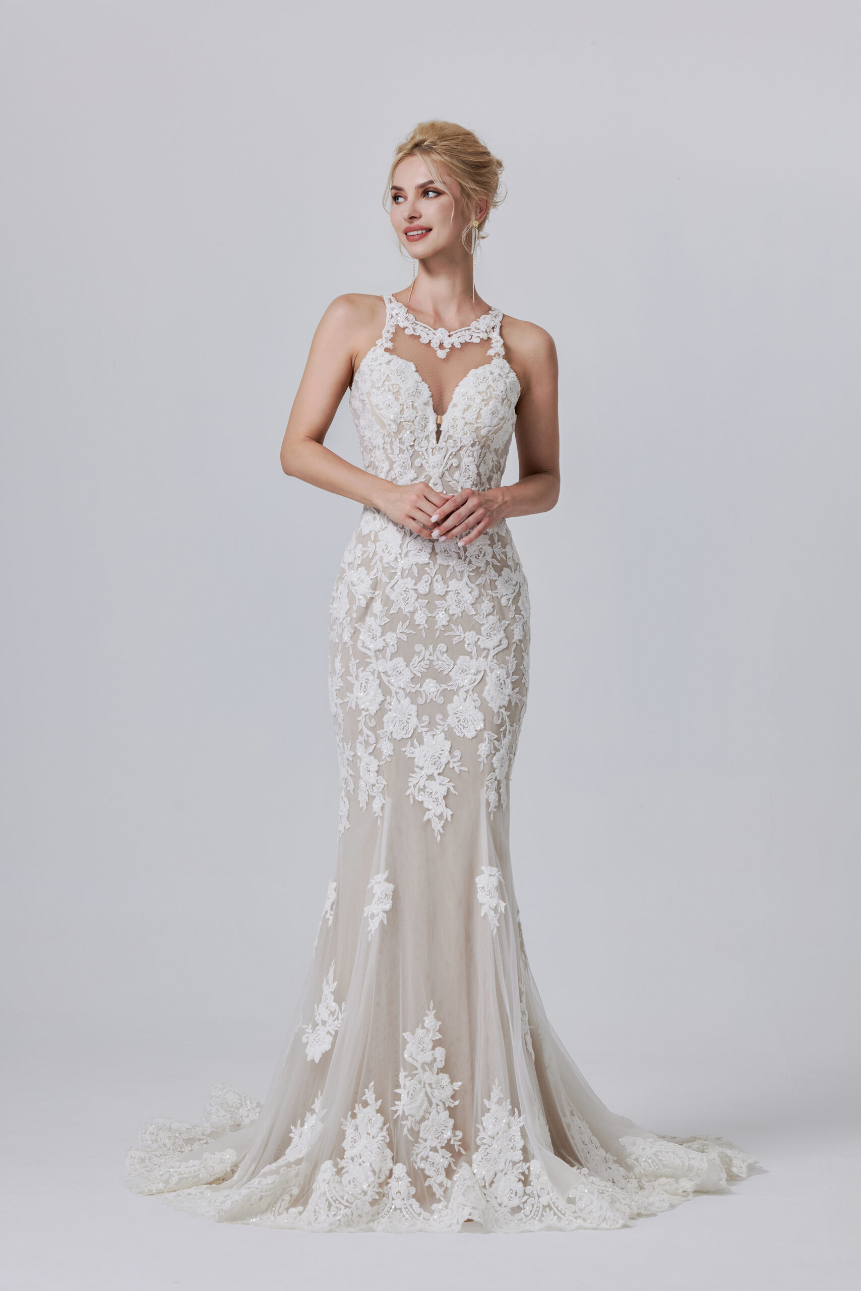Take a dip into the exquisite beauty of mermaid gowns and show off your style as the most stunning bride with this Lace Applique Mermaid Wedding Dress. With beautiful lace appliques and a mermaid dress cut, this lovely bridal gown makes an impressive statement of class with a super stylish design and romantic look.